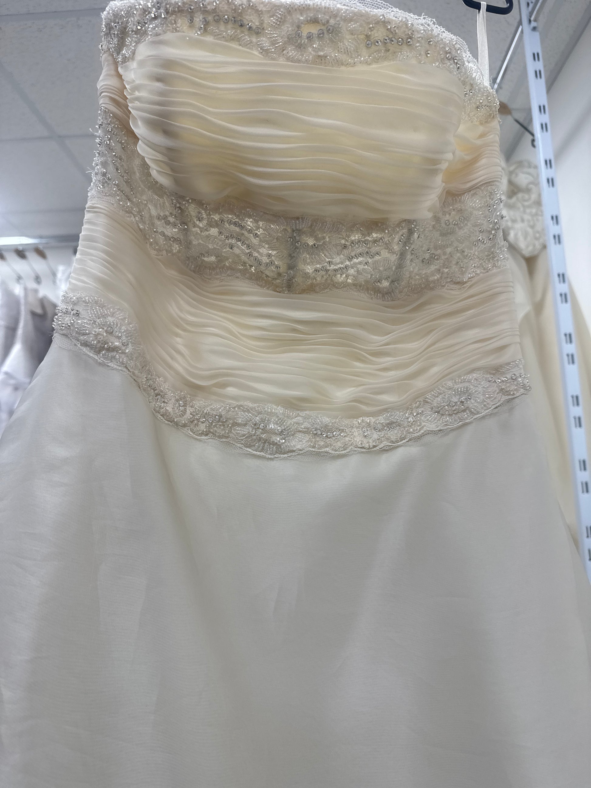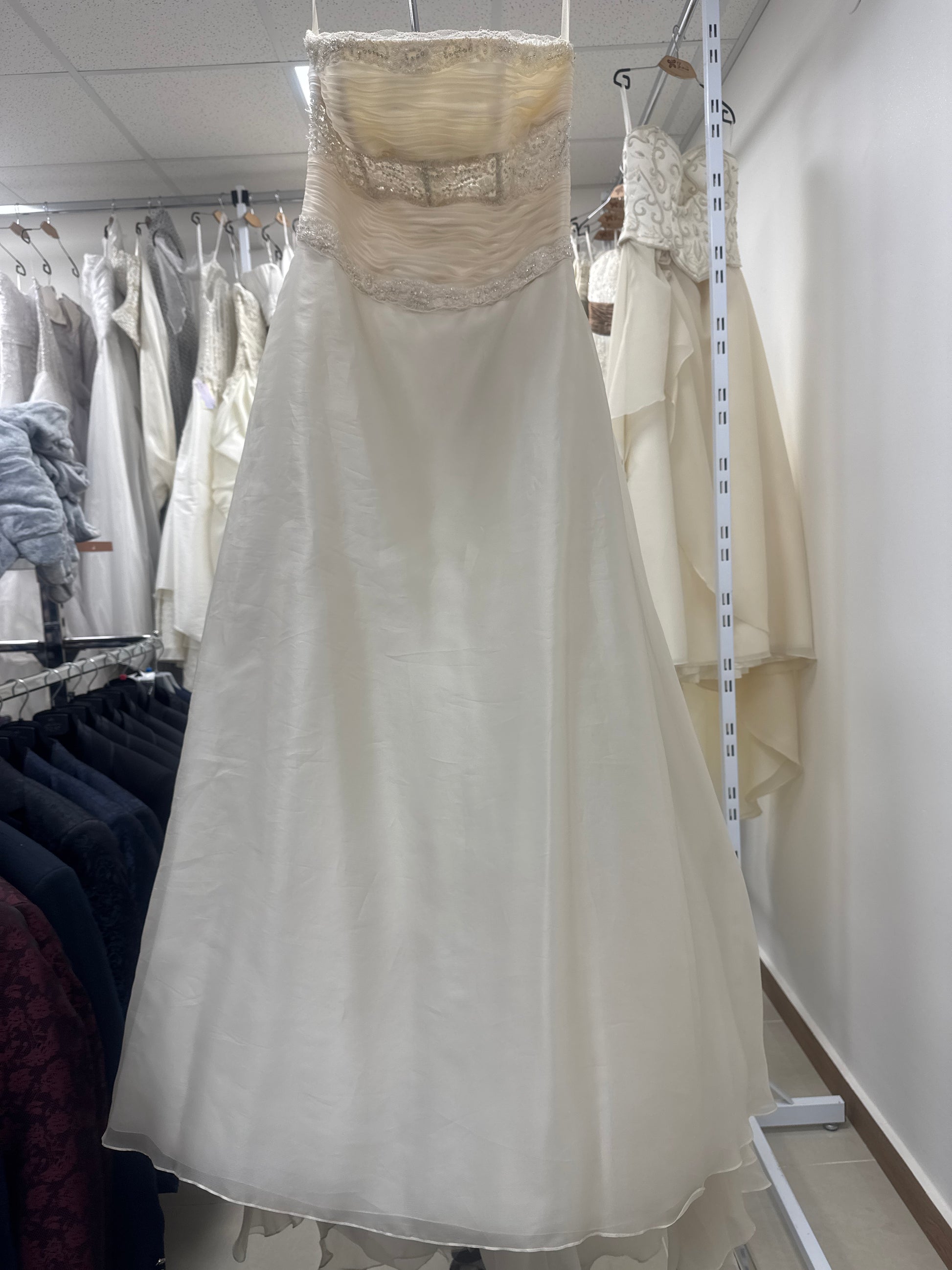 Questo velo da sposa di taglia 46 è realizzato con tessuti di alta qualità e design elegante. Garantisce un aspetto sofisticato e raffinato il giorno delle nozze, con una vestibilità perfetta per chi indossa il 46. Mostra la tua bellezza con questo abito da sposa.