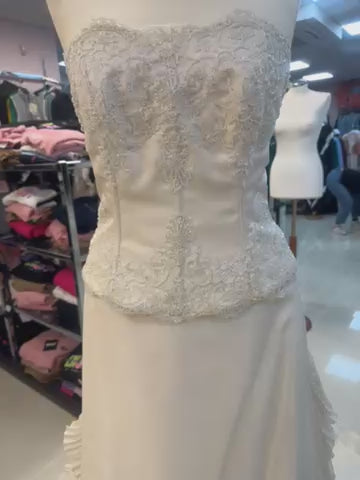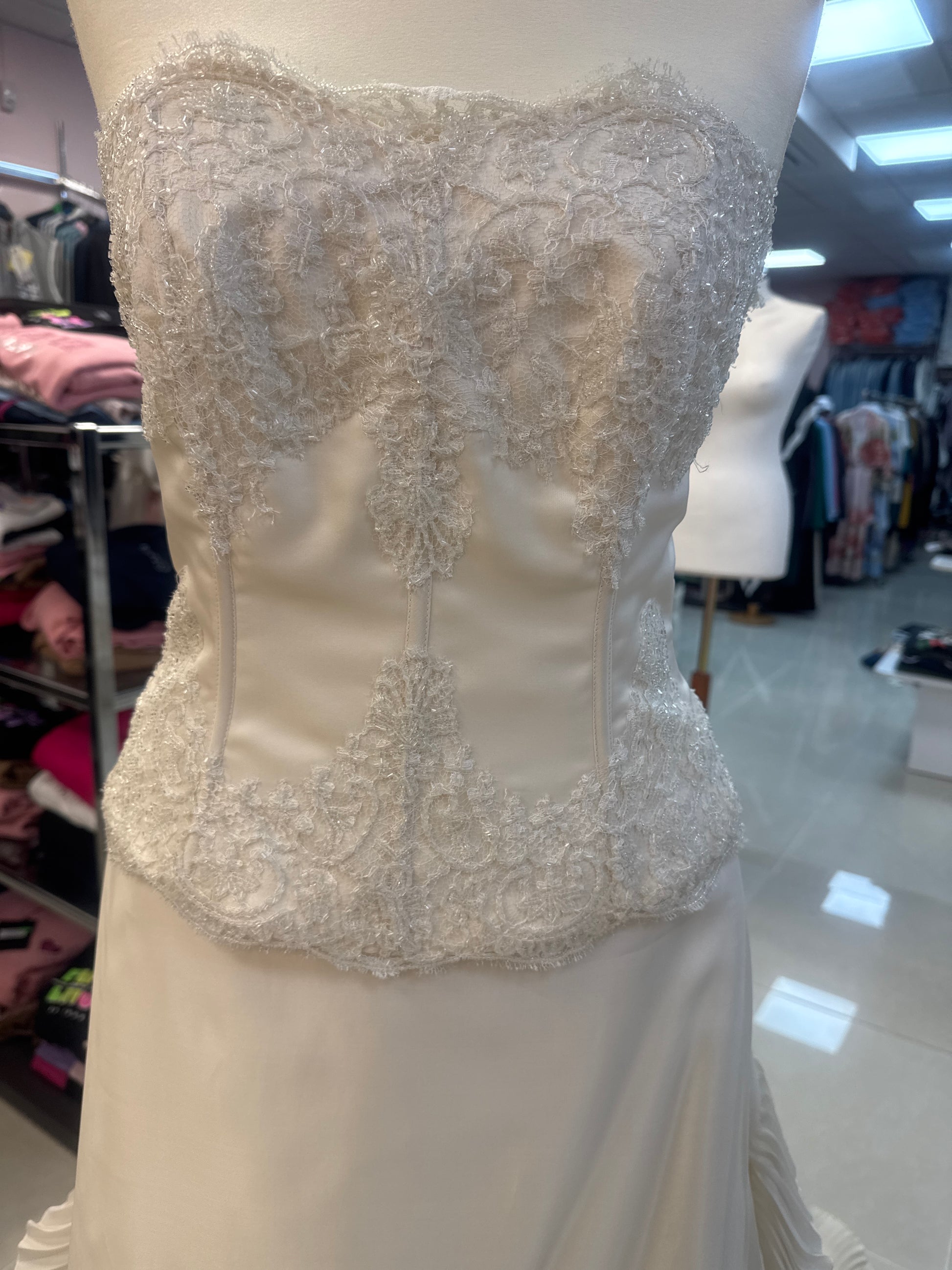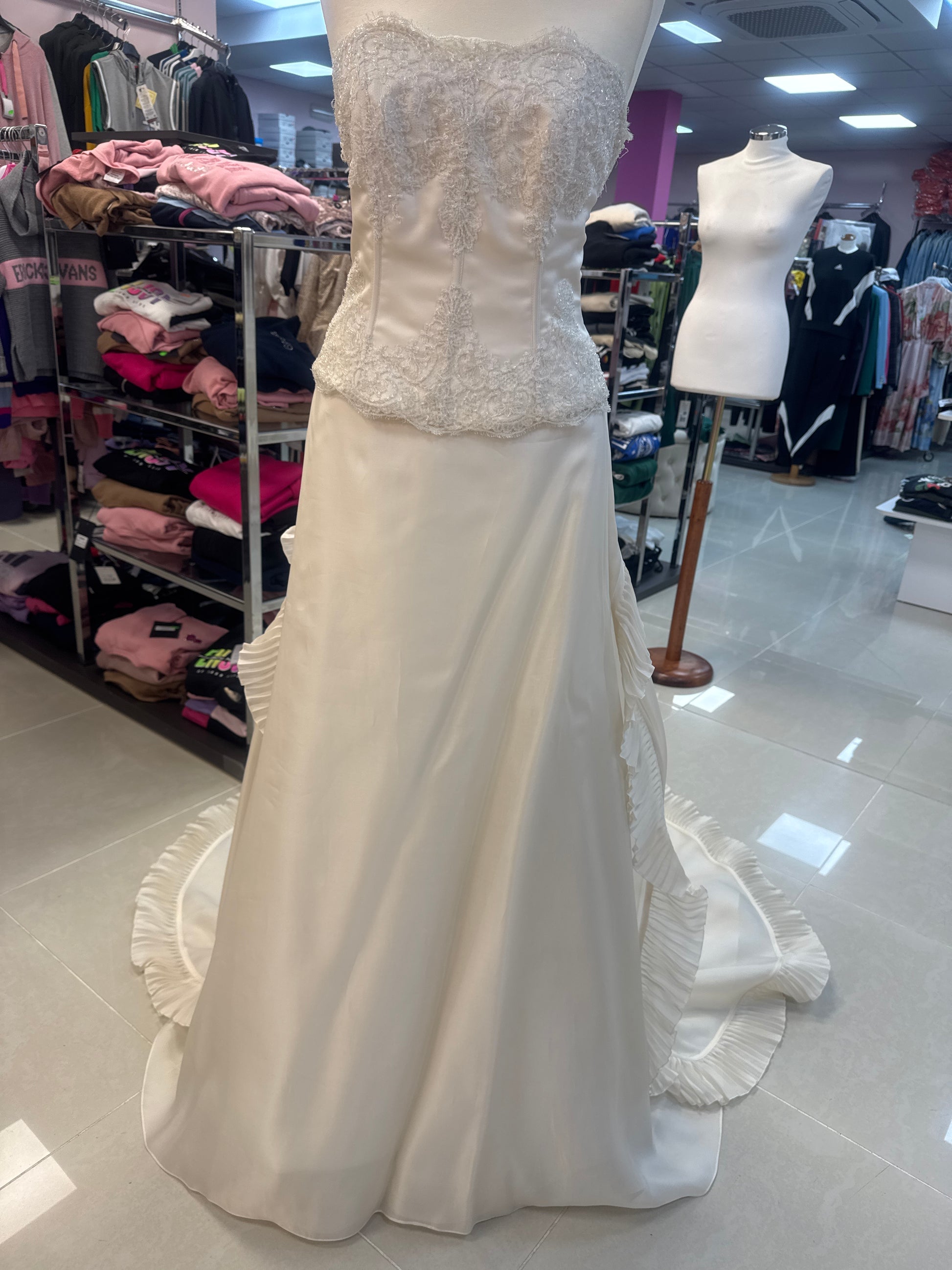 Questo abito da sposa è taglia 46, adatto a diverse forme di corpo. Realizzato con materiali di alta qualità, è confortevole e durevole. Con un design elegante e moderno, sarà perfetto per il tuo giorno speciale. Sii sicura di te e ti sentirai splendida in questo abito da sposa.