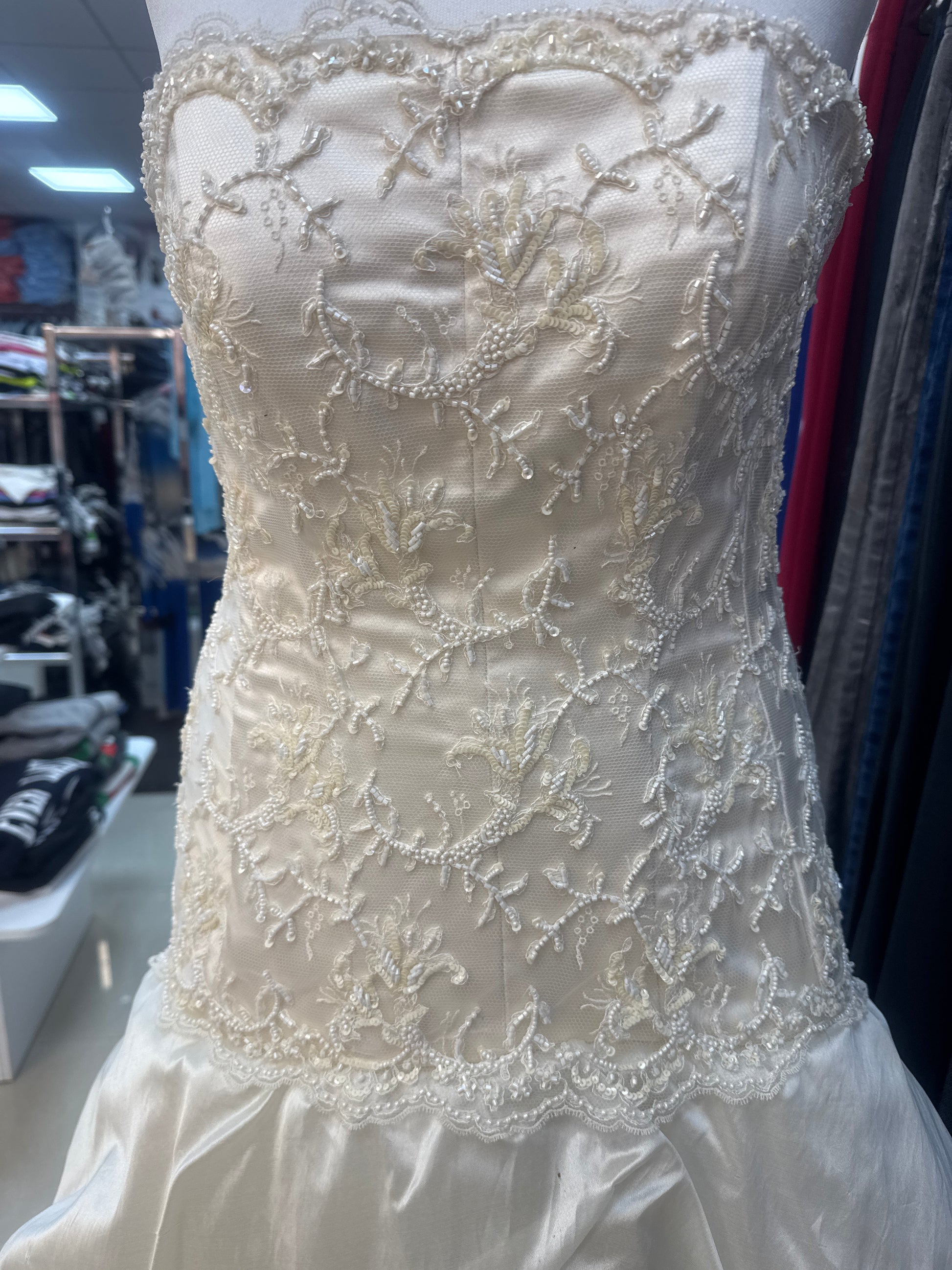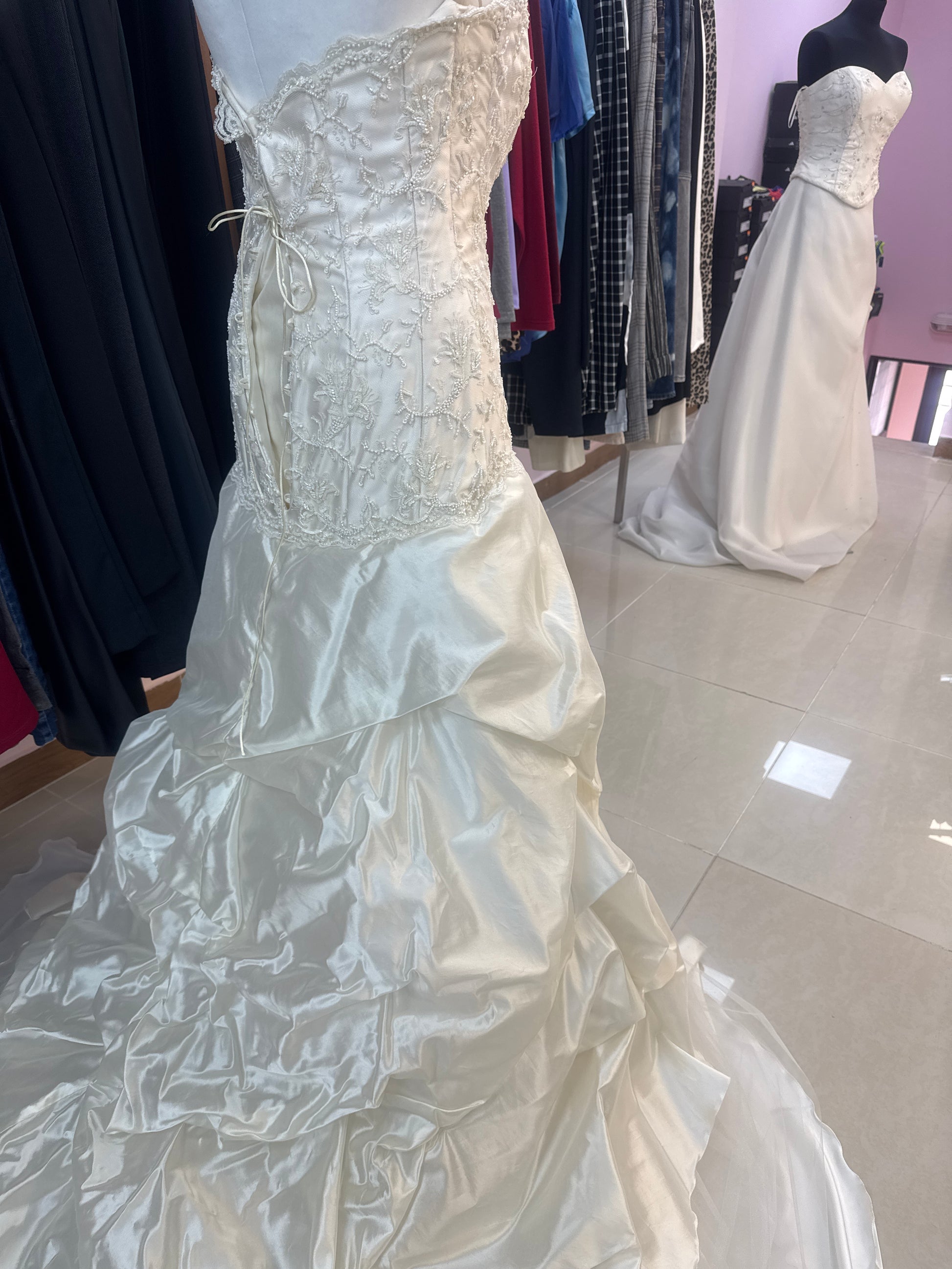 Stupendo abito da sposa in taglia 44. Realizzato con materiali di alta qualità, questo abito è perfetto per chi cerca eleganza e raffinatezza. Scegli il tuo vestito da sposa ideale e cattura gli sguardi di tutti nel giorno più importante della tua vita.