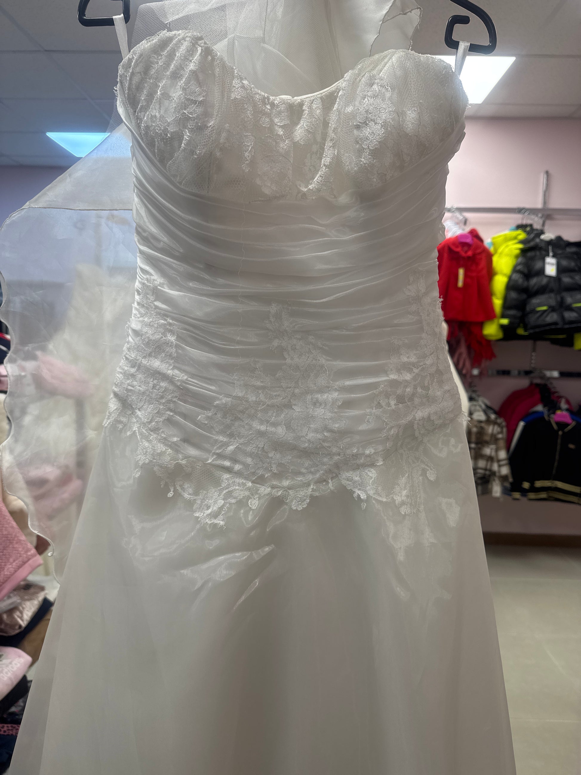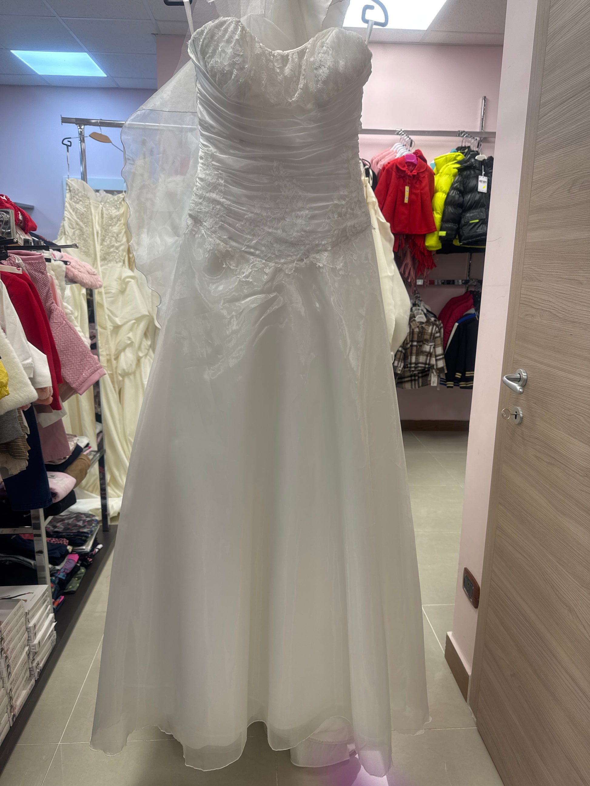 Questo abito da sposa, taglia 42, è la scelta perfetta per la sposa elegante e sofisticata. Realizzato con materiali di alta qualità, questo abito è caratterizzato da un design unico e dettagli esclusivi che catturano l'attenzione e valorizzano la figura della sposa. Aggiungi un tocco di raffinatezza al tuo grande giorno con questo abito da sposa.
