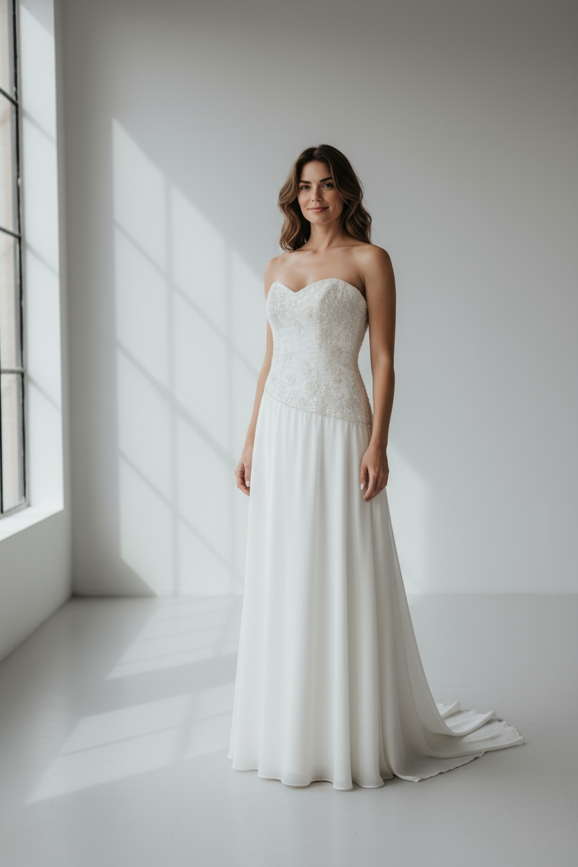 L'abito da sposa TG 44 è progettato con un taglio elegante e una vestibilità perfetta per sentirti sicura e bella nel tuo giorno speciale. Realizzato con tessuti pregiati e una vestibilità aderente, questo abito garantisce un look sofisticato e raffinato.