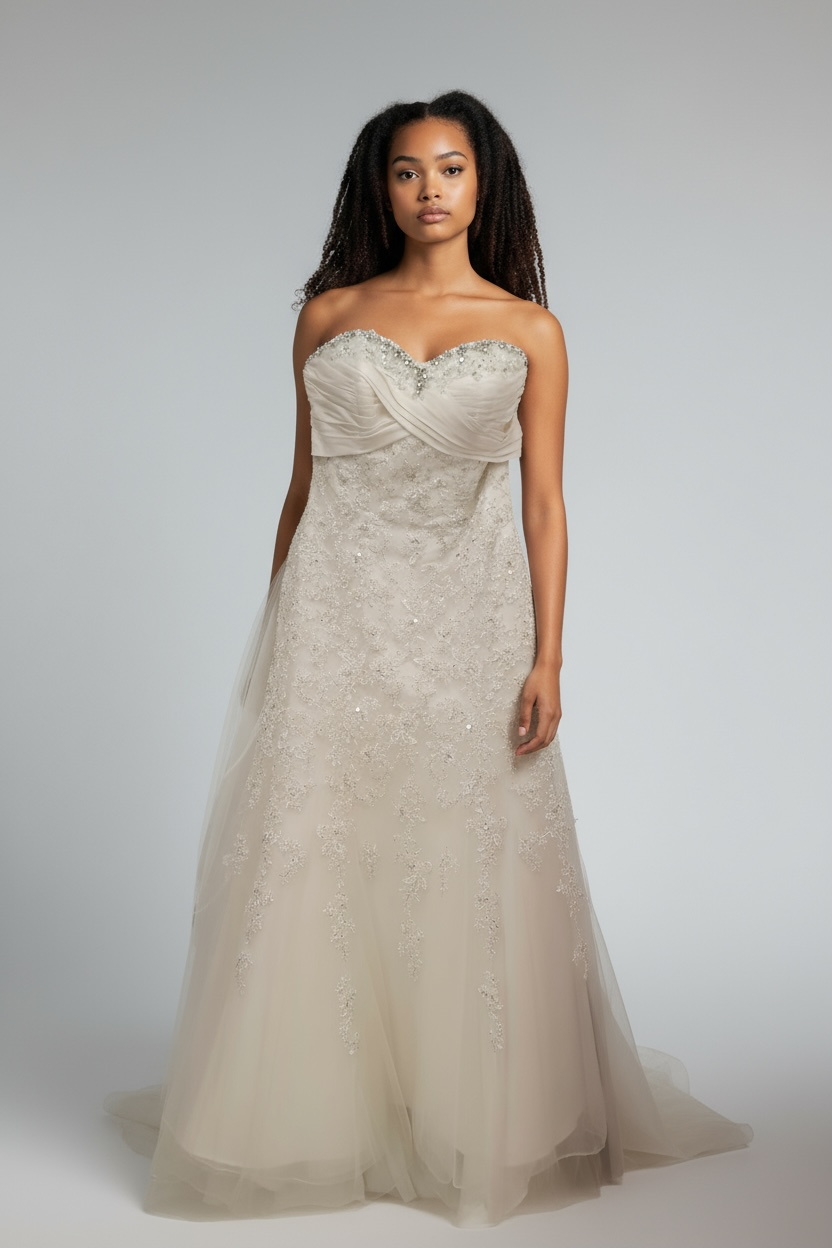 Questo elegante abito da sposa in taglia 46 è perfetto per il tuo grande giorno. Realizzato con materiali di alta qualità e cuciture precise, ti farà sentire bellissima e sicura. La sua silhouette chic e l'ampia scelta di dettagli rendono questo abito un'opzione versatile per ogni tipo di matrimonio.