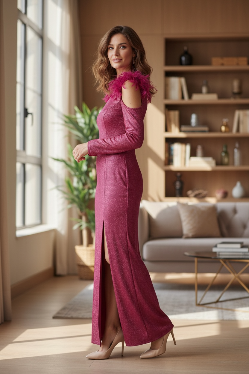 # Abito Piuma Glit Eleganza senza compromessi con questo abito che unisce leggerezza e sofisticazione. La texture piuma garantisce comfort eccezionale durante tutto il giorno, mentre la finitura glitterata cattura la luce con un effetto luminoso e raffinato. Perfetto per occasioni speciali o per chi desidera un capo che trasmetta sicurezza e stile. Un investimento versatile che eleva qualsiasi guardaroba con una presenza distintiva e moderna.