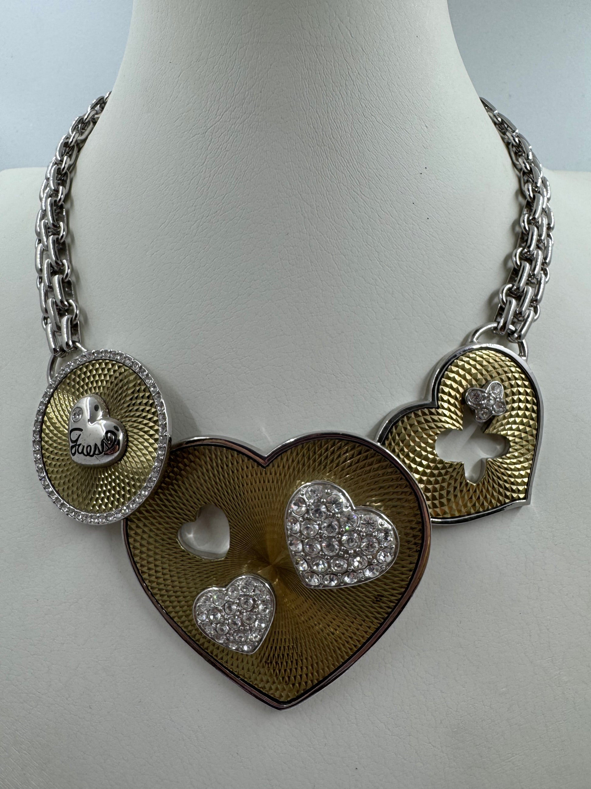 La collana Love Guess unisce eleganza e modernità con la sua struttura in acciaio inossidabile, impreziosita da cuori dorati e delicati brillantini. Questo gioiello raffinato è ideale per chi desidera un accessorio resistente e dallo stile sofisticato, perfetto per valorizzare ogni look con un tocco di luce e romanticismo.