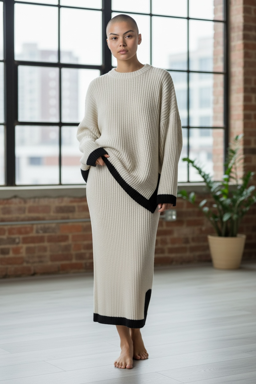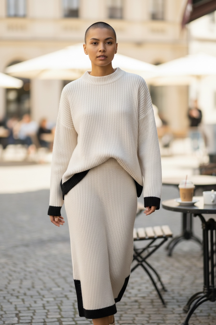 Completo elegante in pura lana che unisce praticità e stile. Il maglioncino a maniche lunghe si abbina perfettamente alla gonna lunga, creando un outfit versatile ideale per occasioni formali e casual. La vestibilità regular garantisce comfort senza compromessi, mentre la qualità della lana assicura calore e durabilità nel tempo. Disponibile fino alla taglia 48/50, perfetto per chi ricerca un capo sofisticato e senza tempo nel proprio guardaroba.