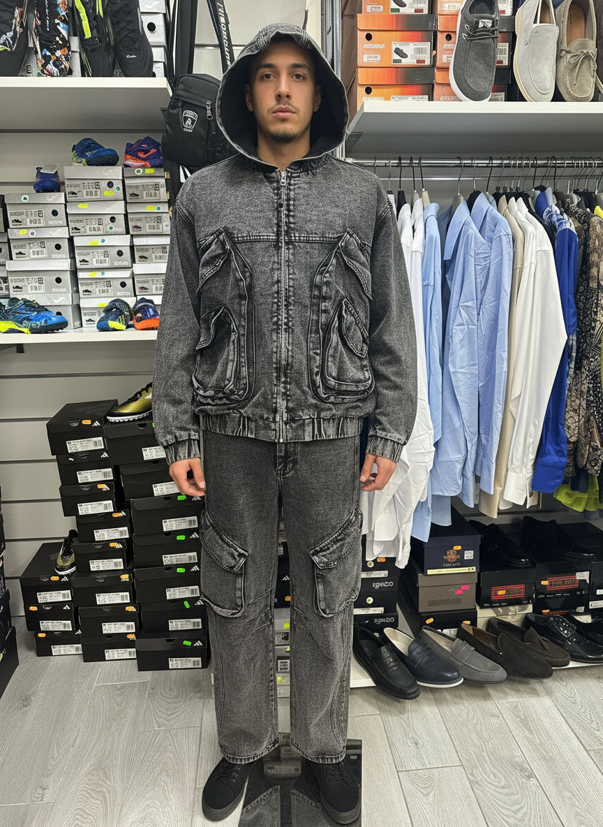 Completo in jeans, giubbino e pantaloni