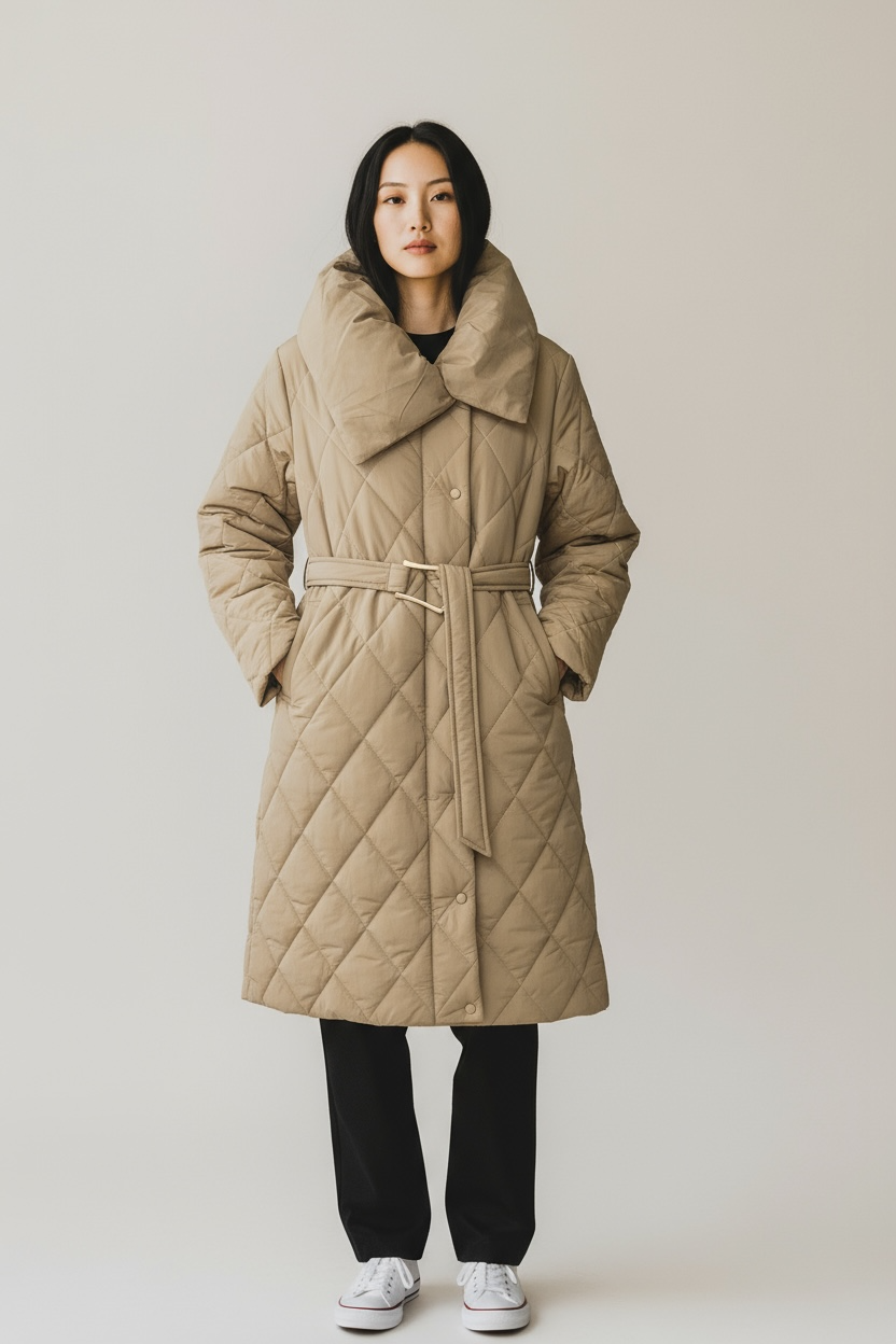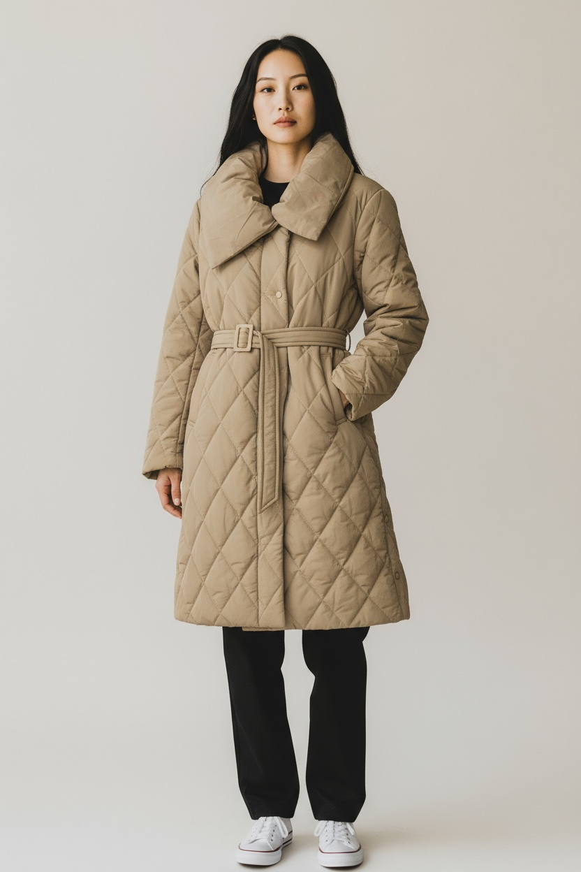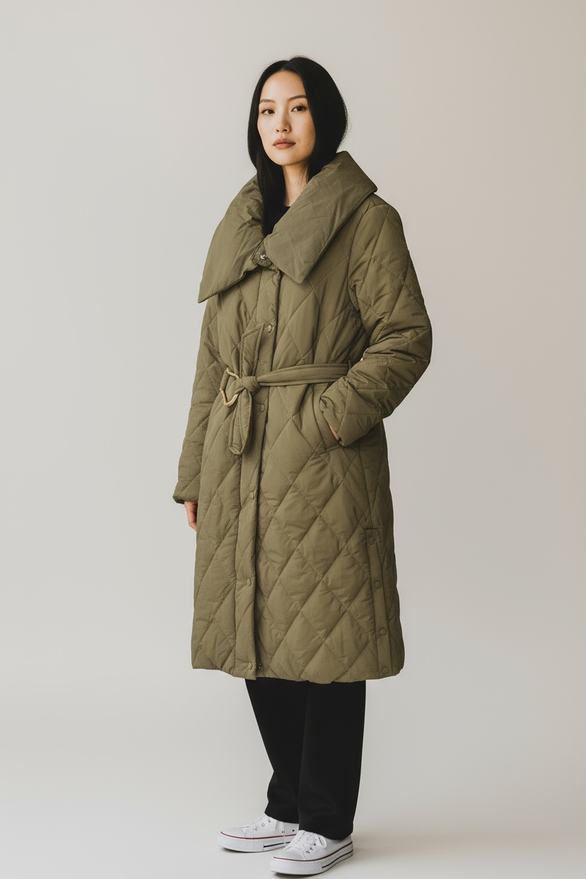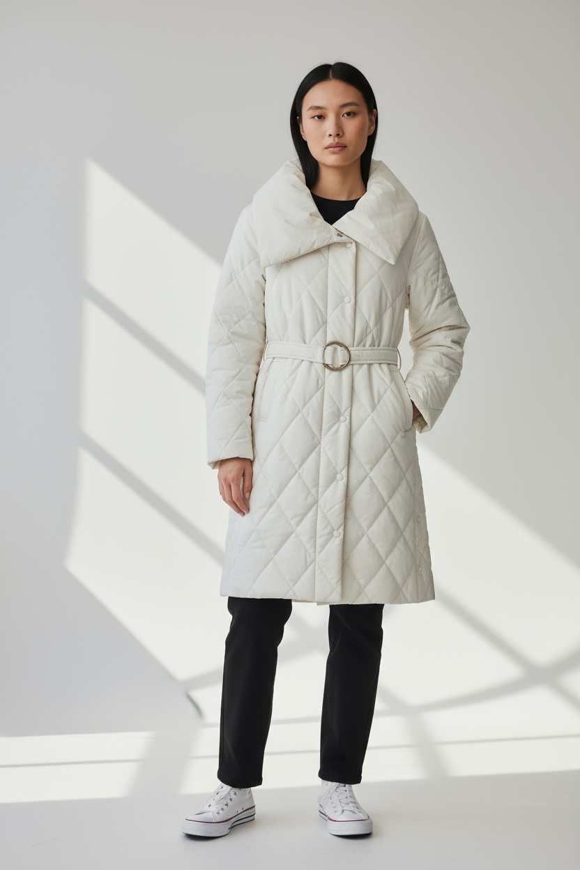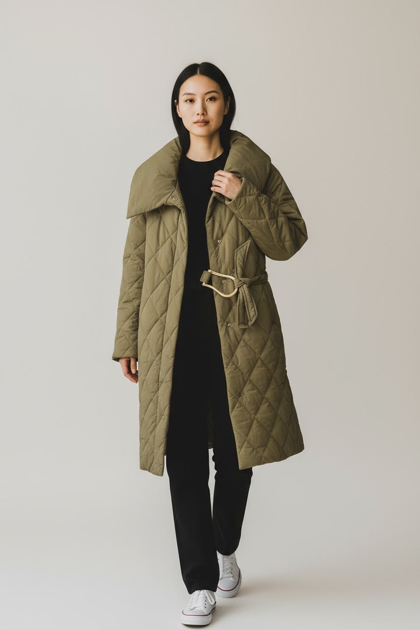 Giubbino modello Mercedes lungo abbottonatura con automatici cintura in vita e tasche