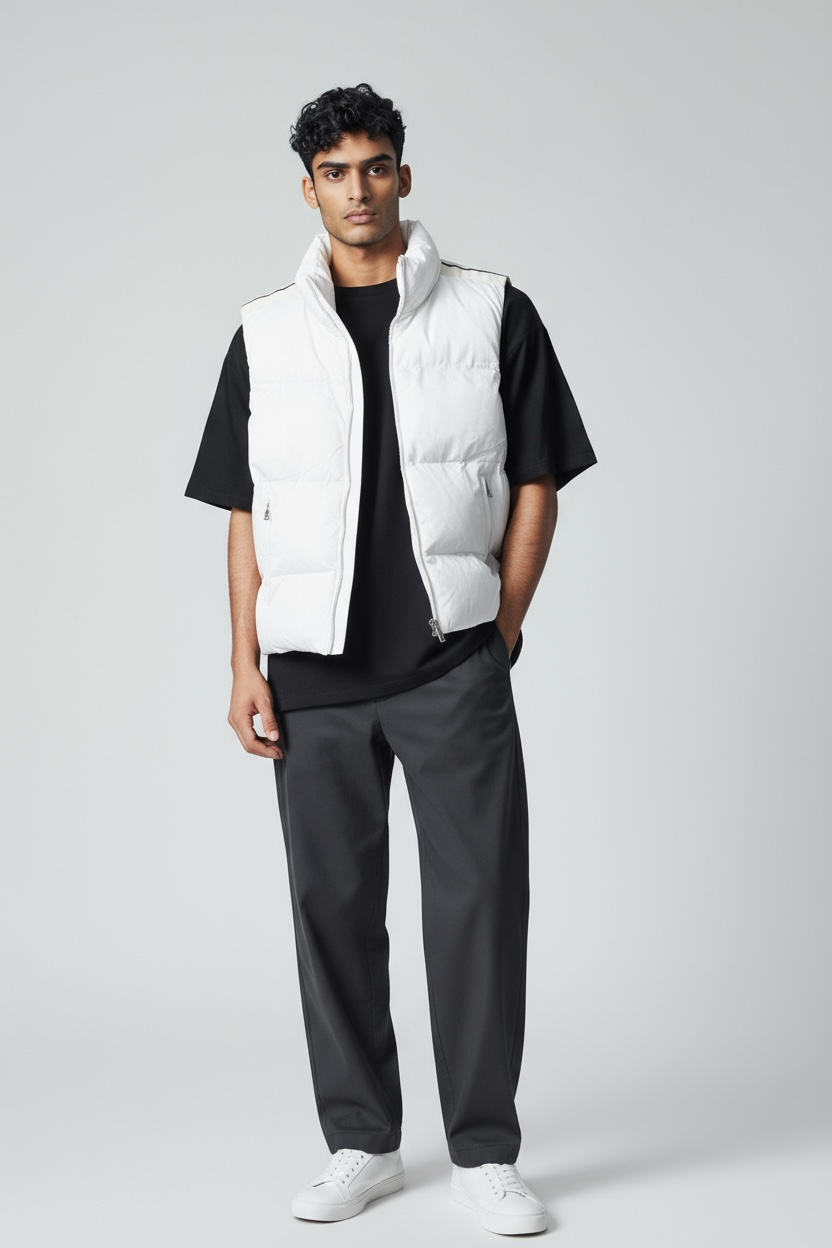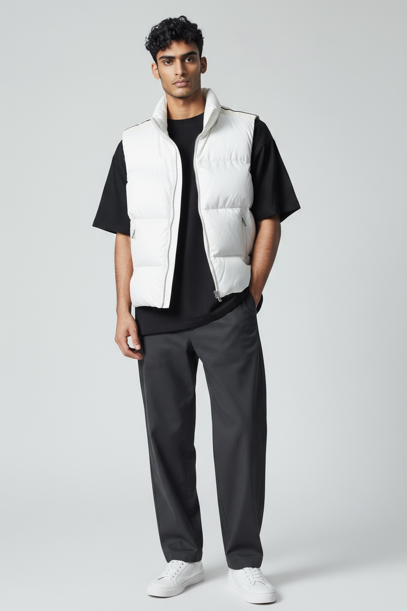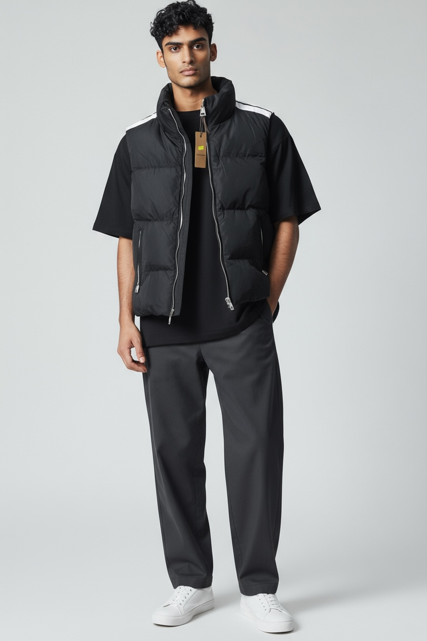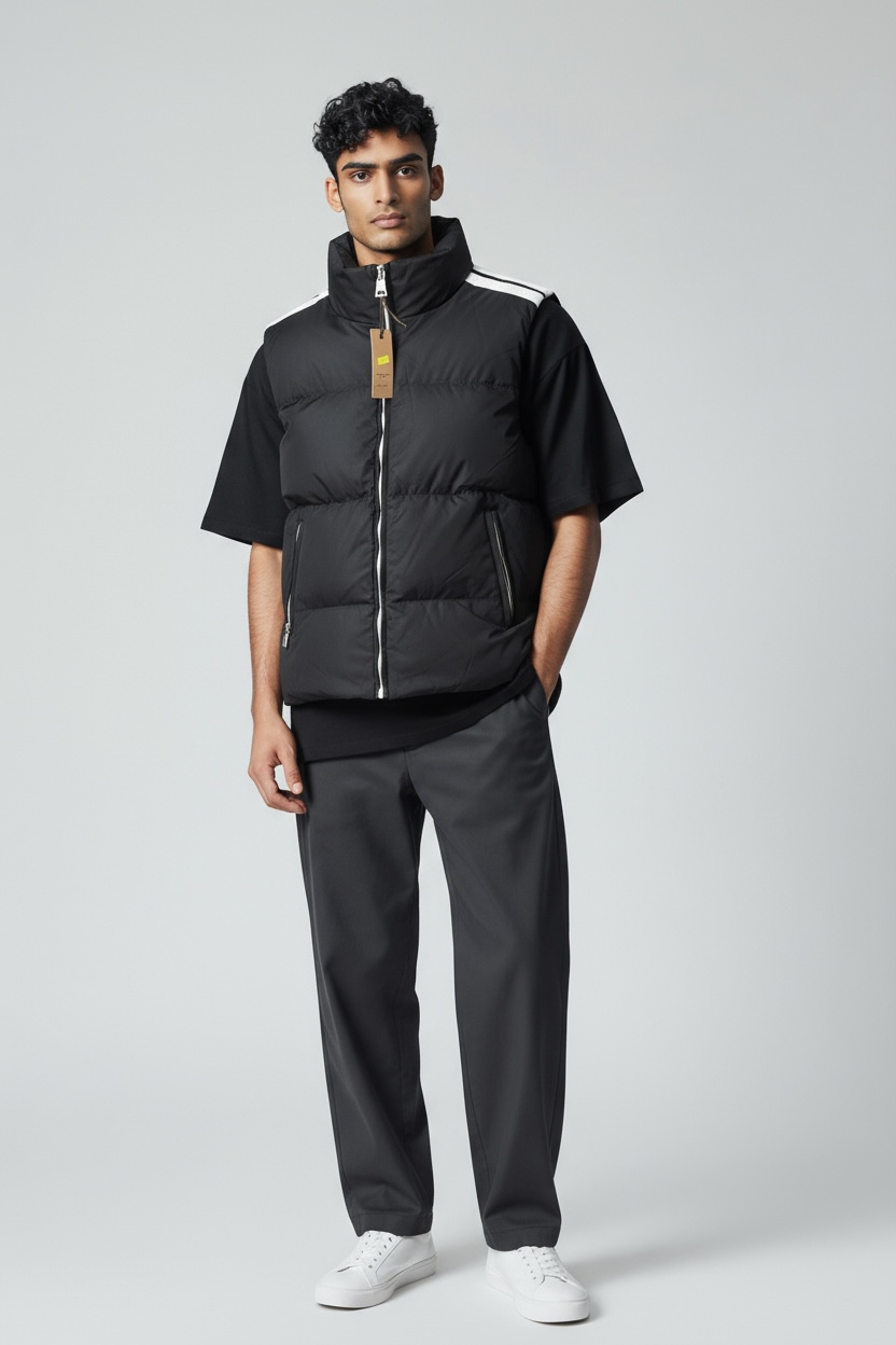 Smanicate imbottito, chiusura zip con due strisce sulle spalle a contrasto, colore