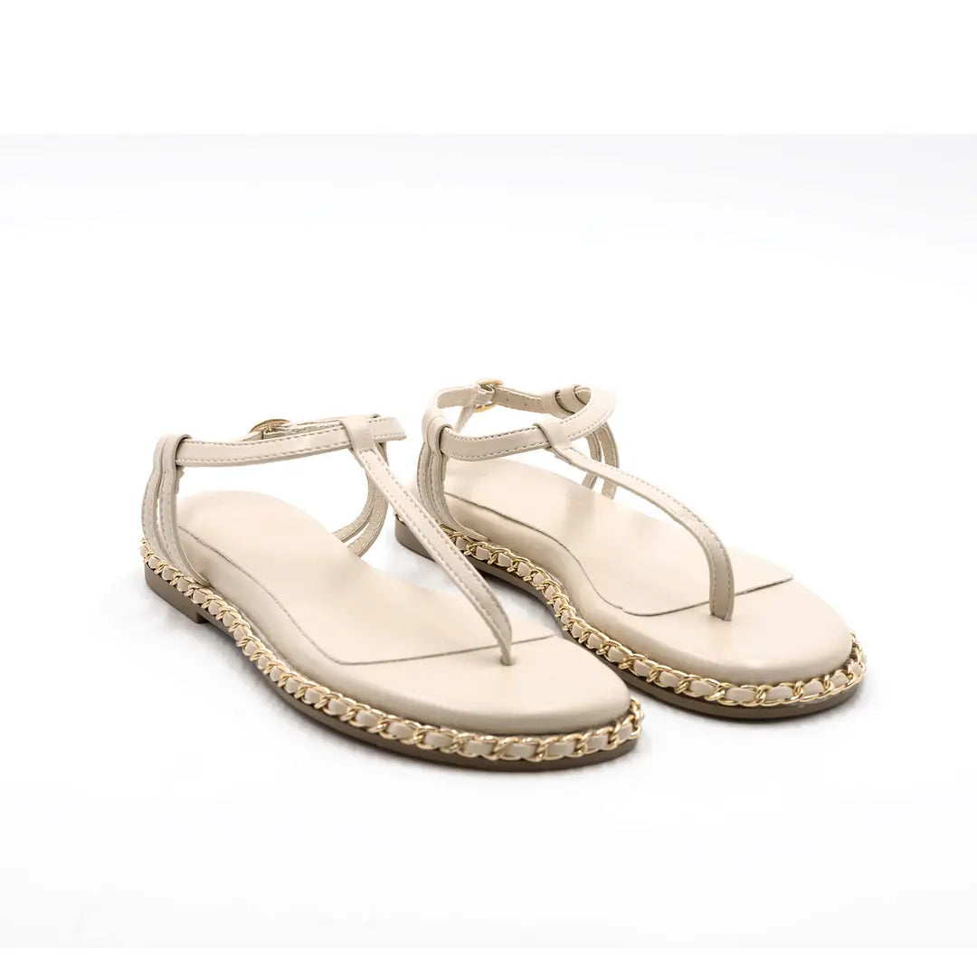 Un must-have estivo che unisce stile e comfort: gli infradito IKAROS con suola in pelle. Perfetti per completare il tuo outfit estivo con un tocco di eleganza. Disponibili nei colori panna e nero, questi infradito ti terranno fresco e alla moda.