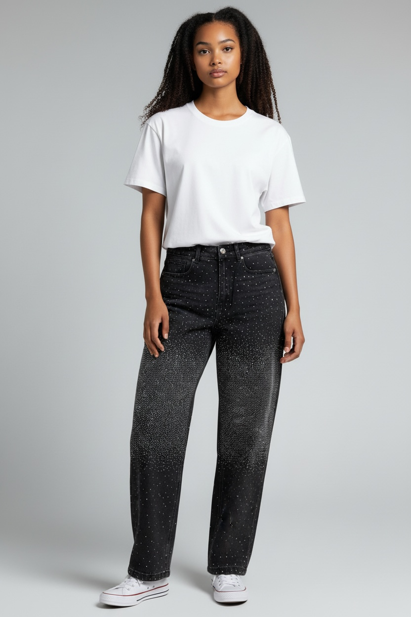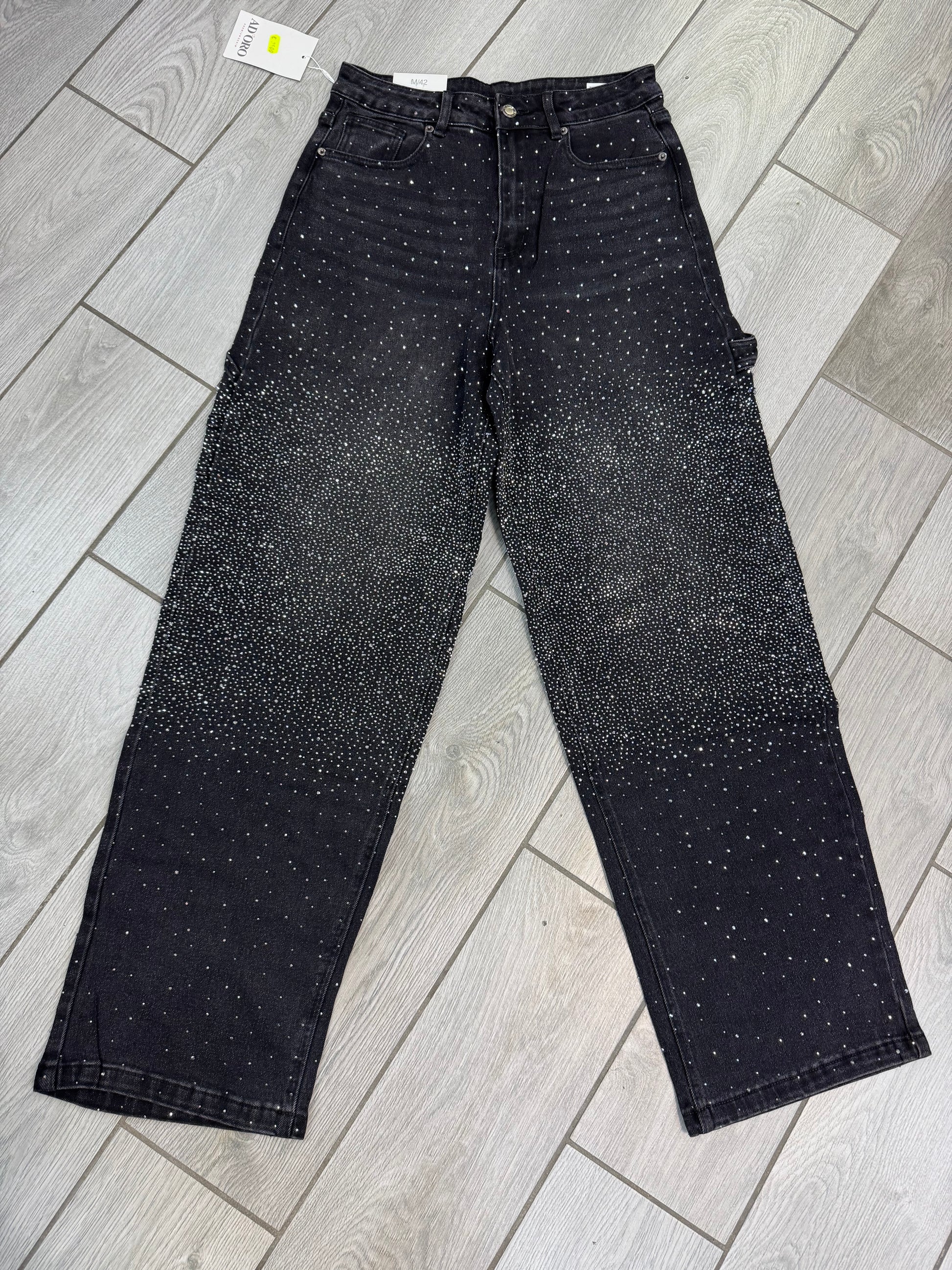 Jeans Vestibilità buggy con brillantini sia sul davanti che sul dietro dei pantaloni modello balloon