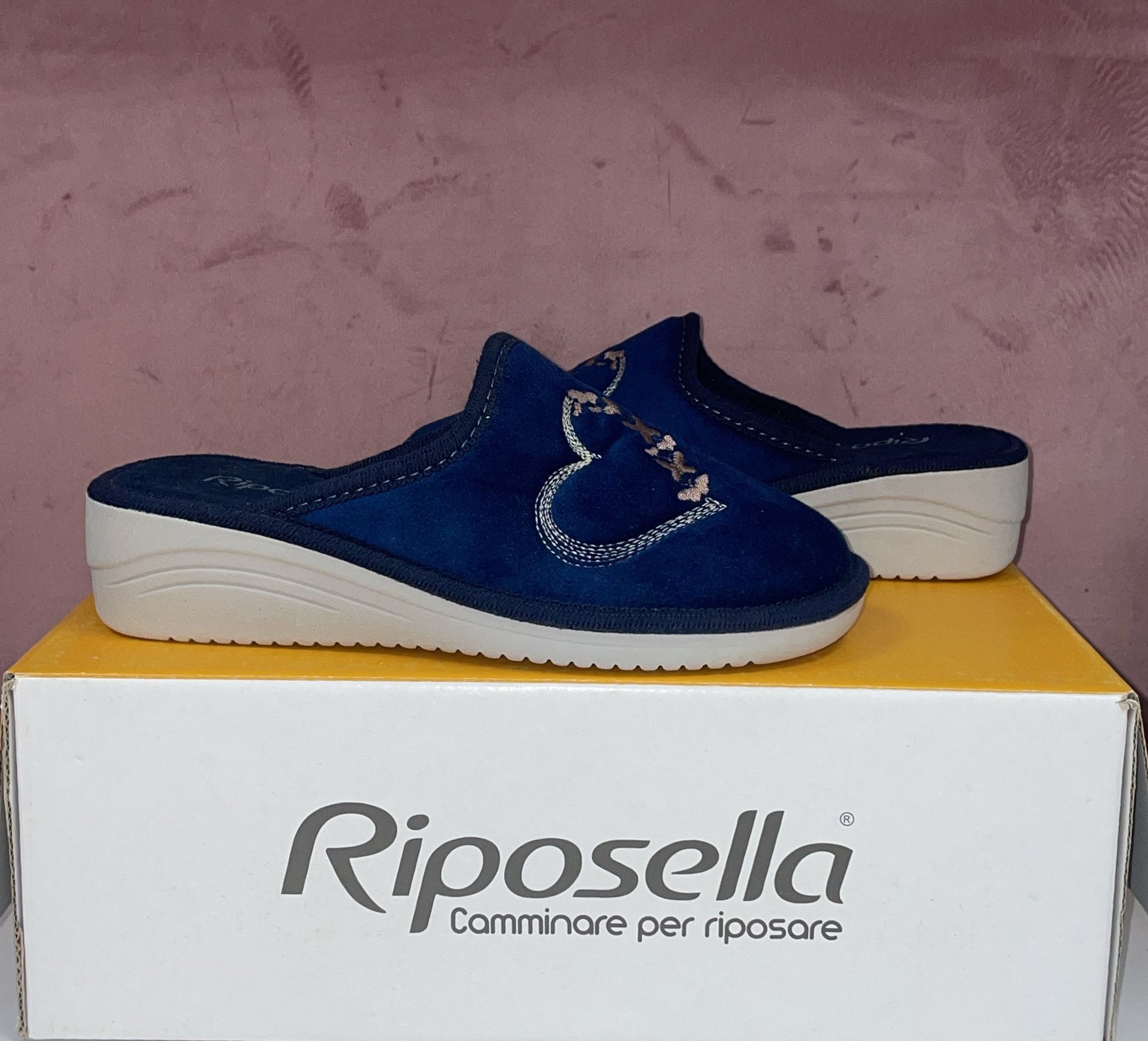 Porta comfort e stile con le Pantofole Riposella Stella Blu. Perfette per il relax dopo una lunga giornata, grazie alla loro linea ergonomica e morbida suola anti-scivolo, puoi camminare con facilità e sicurezza. Il loro design elegante e la qualità dei materiali ti faranno sentire al top.