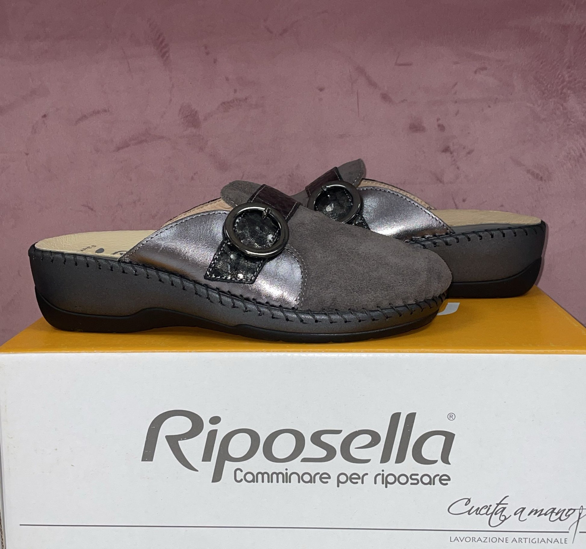 Pantofole Riposella Viviana 6490 ti offrono il massimo comfort grazie alla loro suola interna in memory foam che si adatta alla forma del tuo piede e allevia la pressione. La loro tomaia in morbido tessuto garantisce una sensazione di leggerezza e i dettagli in pelle aggiungono un tocco di eleganza. Ideali per il relax a casa.