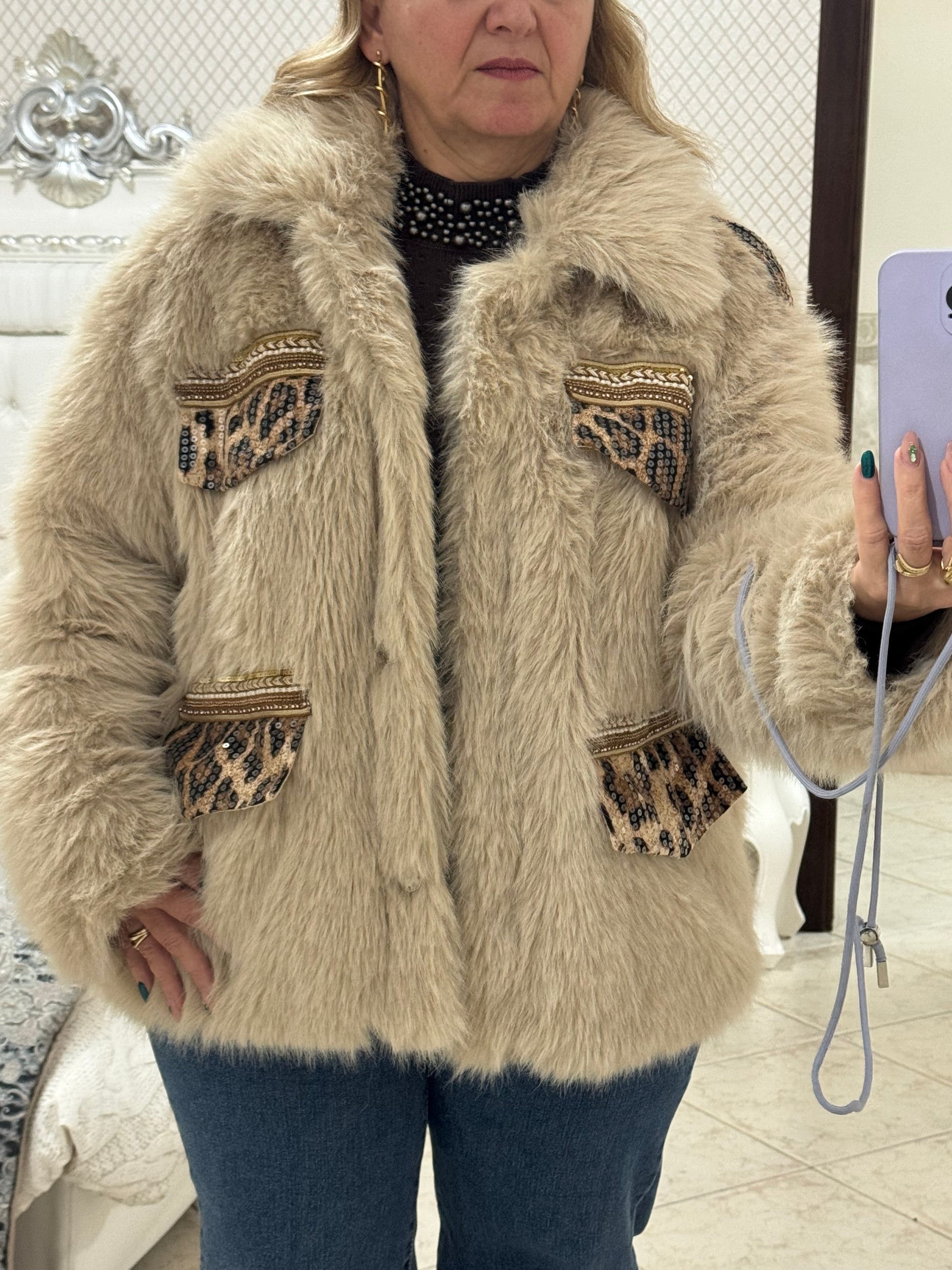 Pellicciotto Mirta, foderato con tasche taglia unica vestibilità fino ad una taglia 50, non oltre