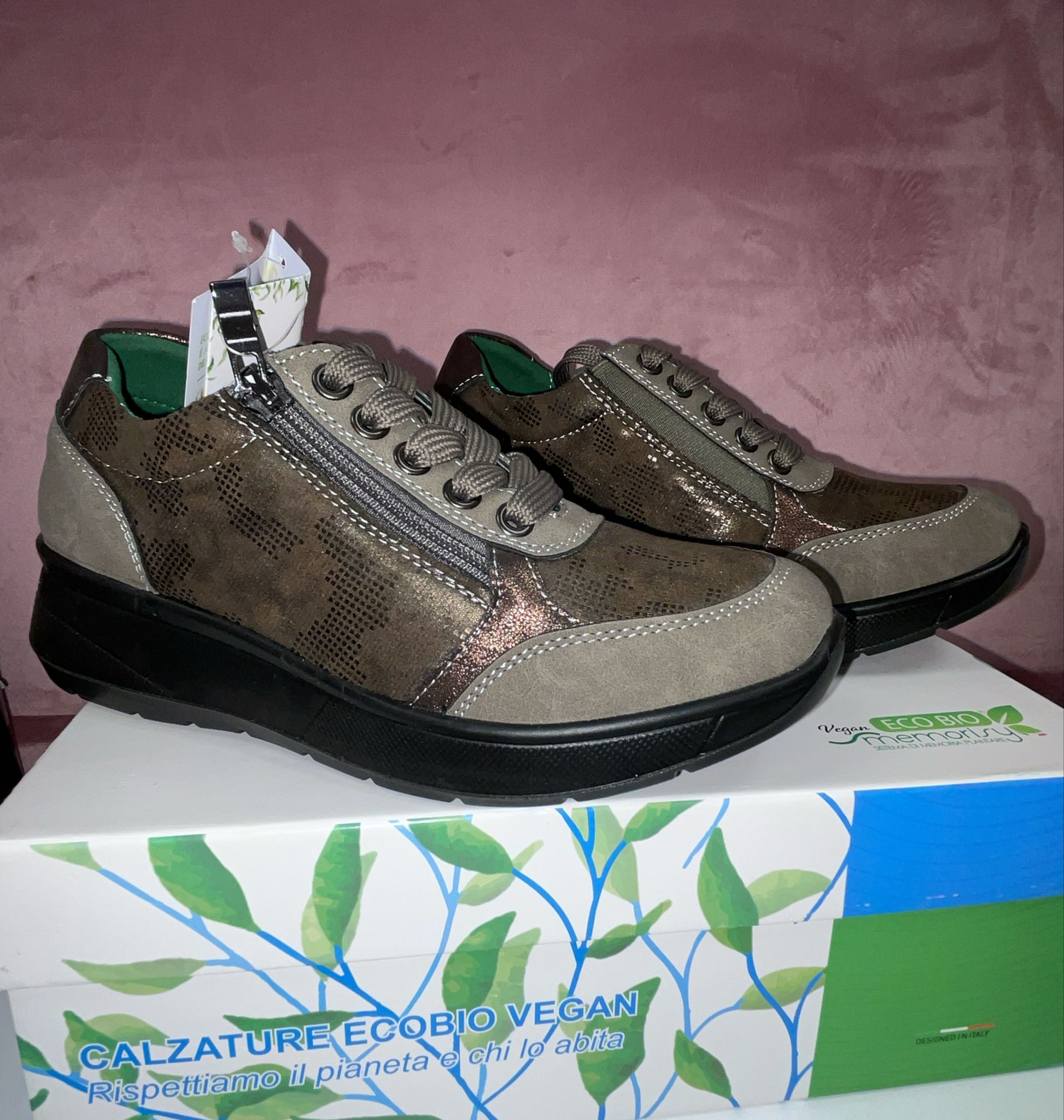 Queste Scarpe Eco Bio Vegan sono realizzate con materiali ecologici e sostenibili. 100% vegan e senza sostanze nocive, sono perfette per chi cerca una calzatura di alta qualità e amica dell'ambiente. Il design moderno e confortevole le rende adatte a qualsiasi occasione, garantendo un look elegante e consapevole.
