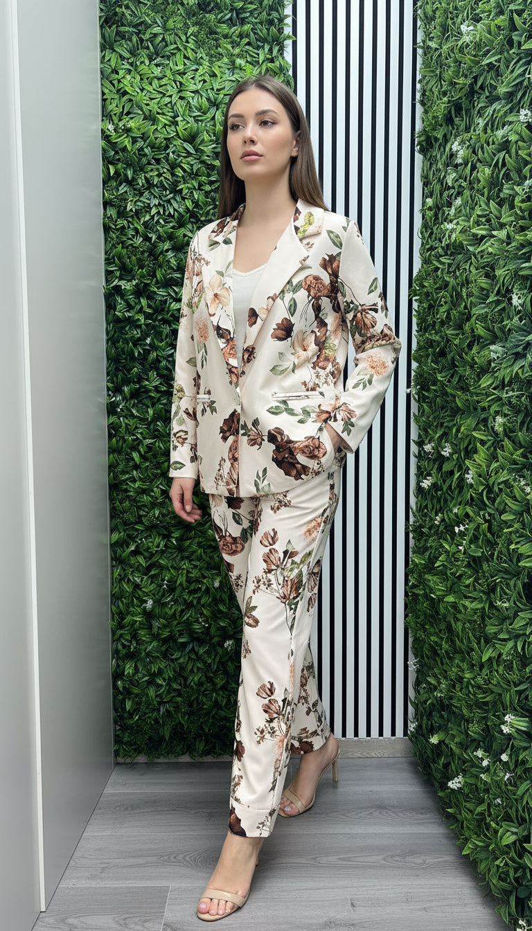 Tailleur taglia unica vestibilità fino a taglia 46, pantaloni gamba, sigaretta con elastico in vita e giacca abbottonata
