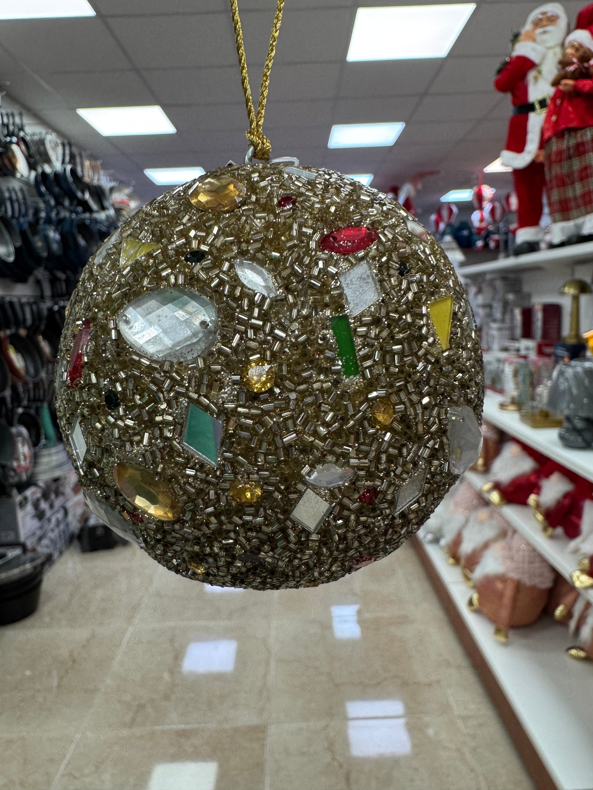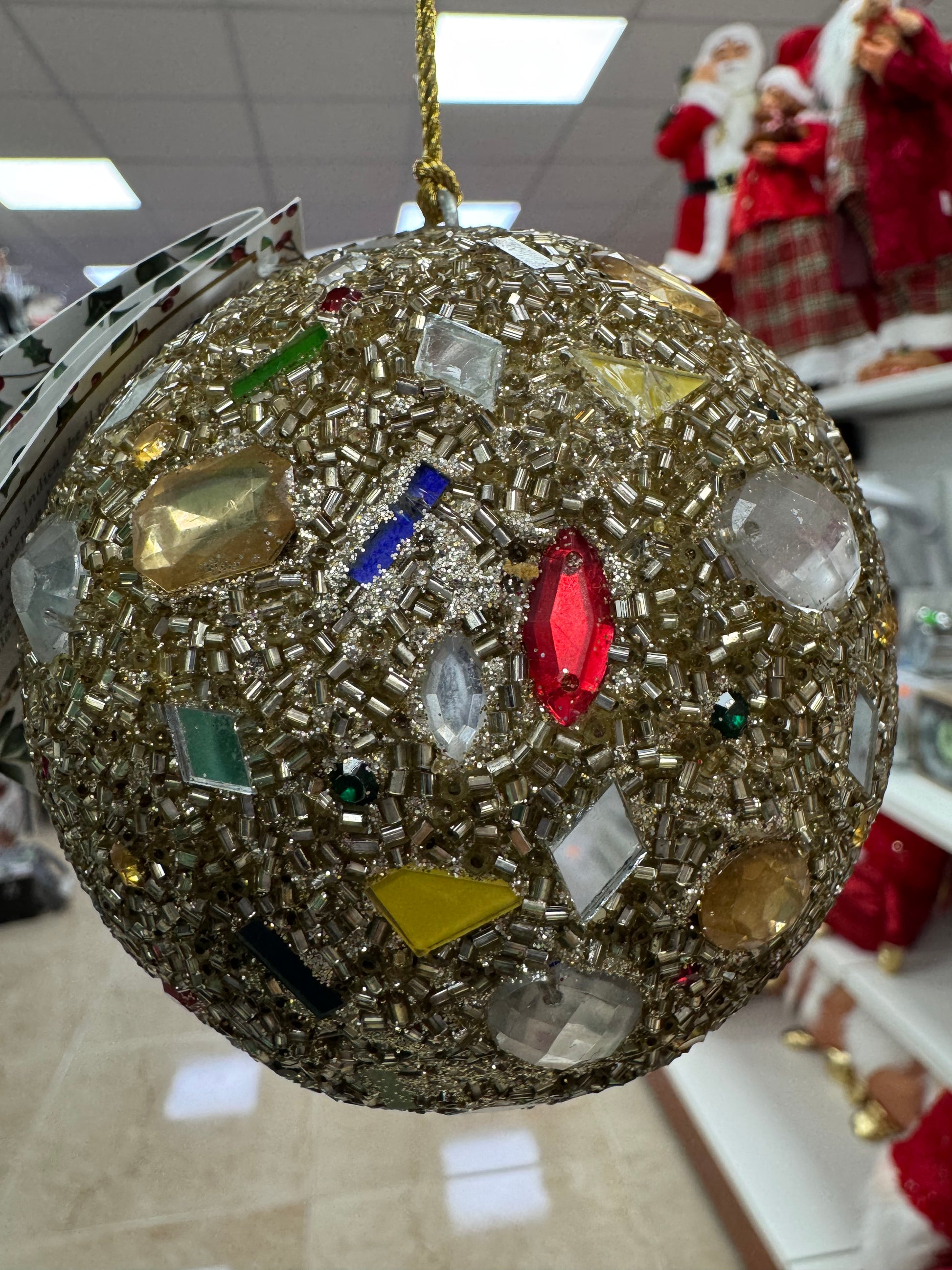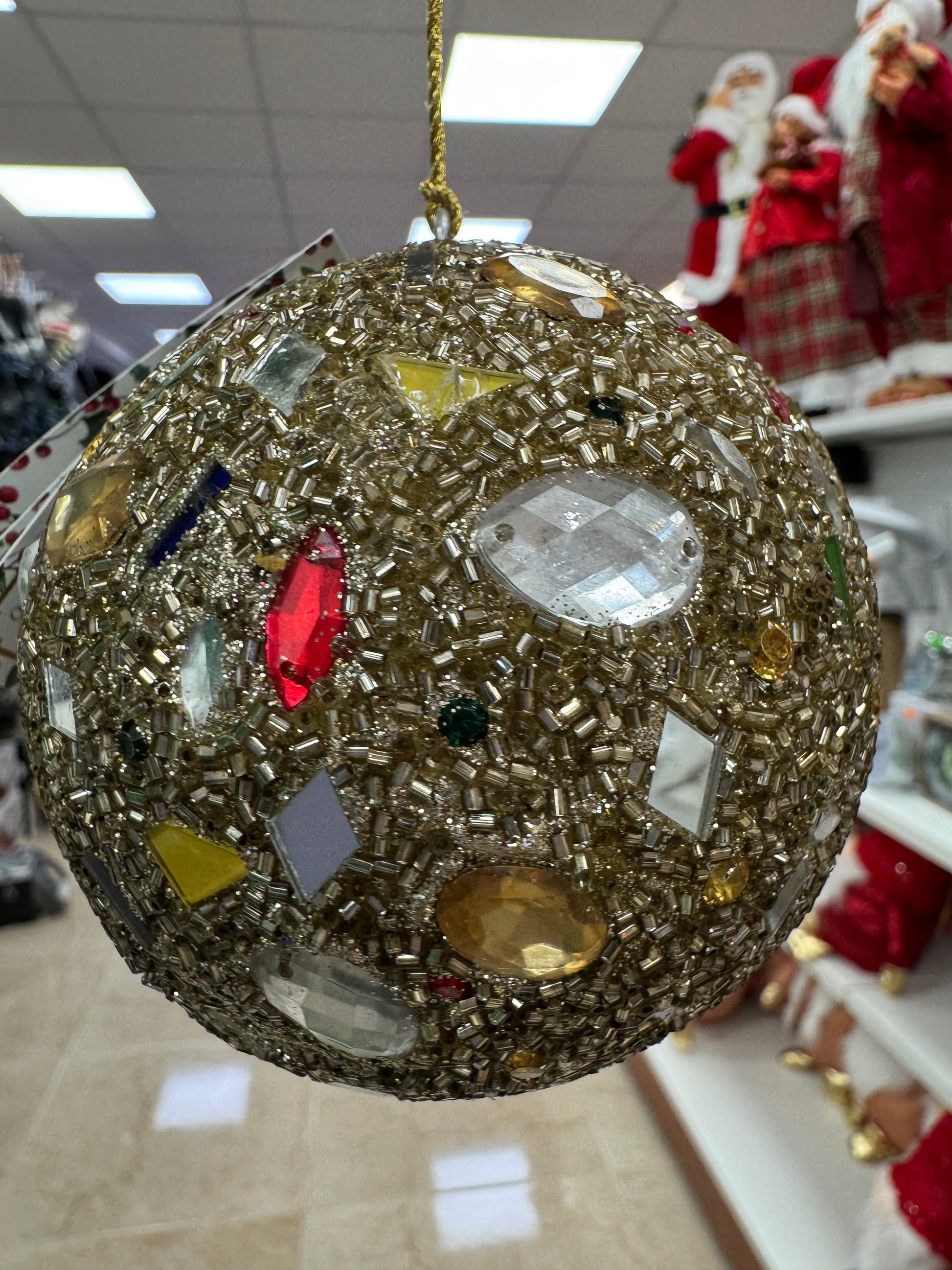 Sfera natalizia decorativa con pietre colore oro e Multicolor diametro centimetri 10