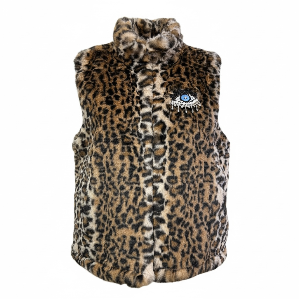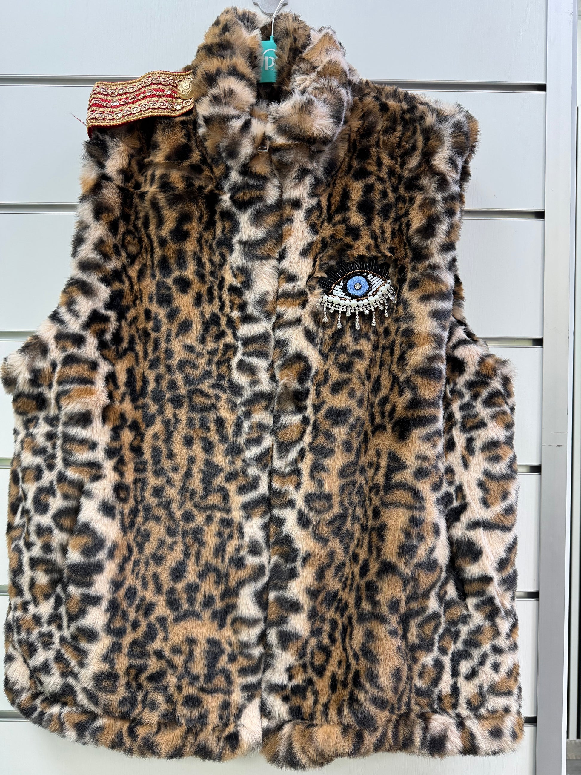 Smanicate pelliccia con occhio ricamato con perline e strass, ma maculato, taglia unica, vestibilità fino a taglia 48 50