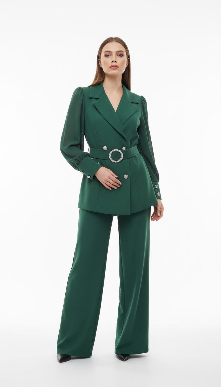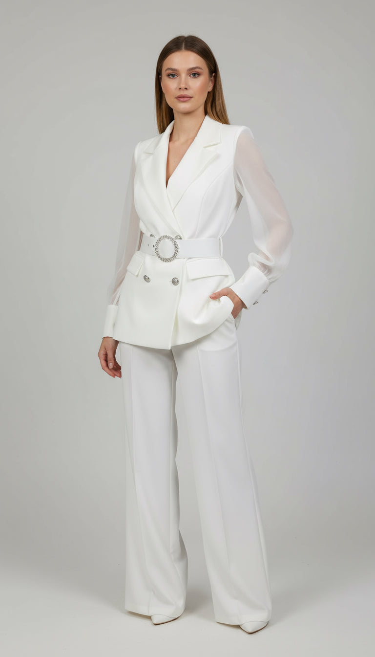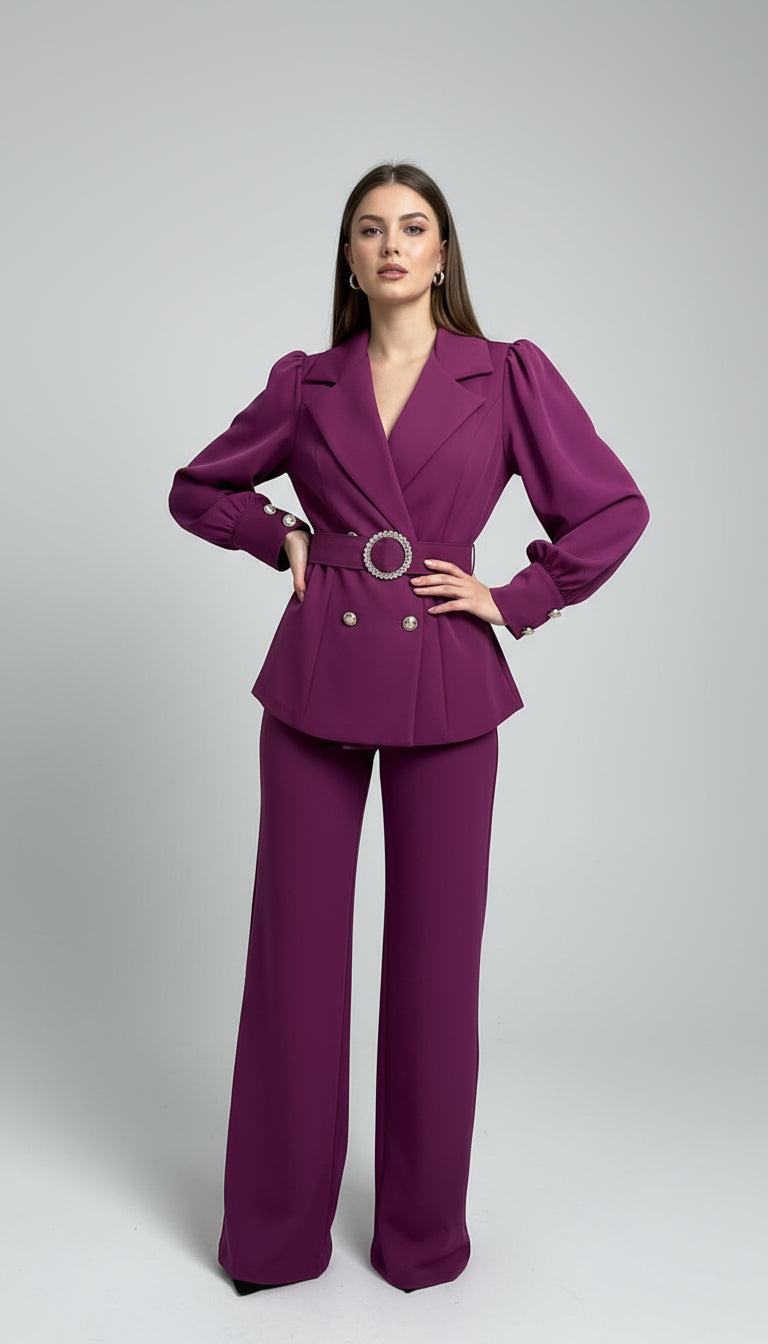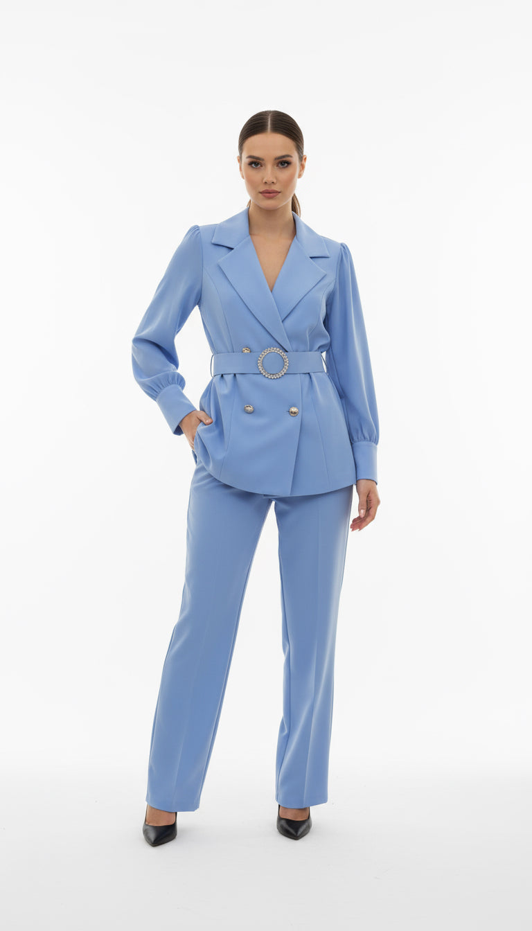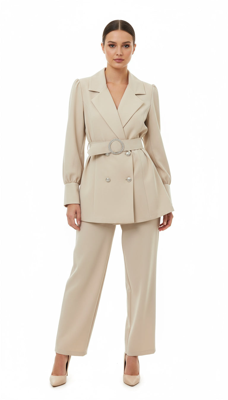 Tailleur con giacca doppiopetto e cintura in vita, vestibilità Slim