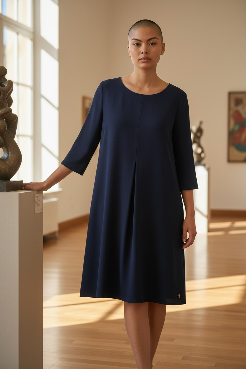# Vestito Artigli con Piegone Elegante vestito caratterizzato da dettagli artigianali raffinati e una plissettatura centrale che crea una silhouette sofisticata. La tonalità blu profonda garantisce versatilità negli abbinamenti, adattandosi perfettamente a occasioni formali e semi-formali. La lavorazione artigianale dei dettagli evidenzia la qualità costruttiva e l'attenzione ai particolari. Ideale per chi ricerca un capo che combini eleganza classica con una ricerca estetica consapevole. Perfetto per cerimonie, cene importanti o look quotidiani elevati.